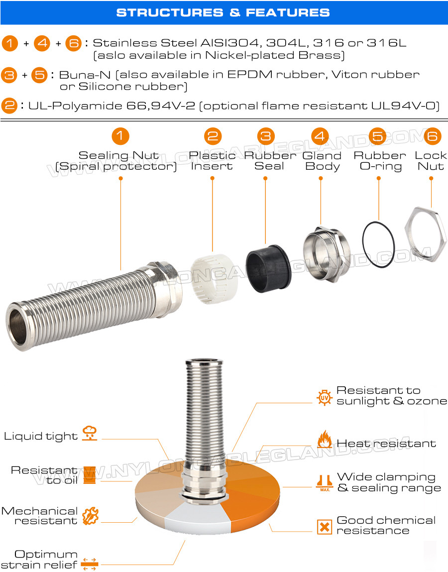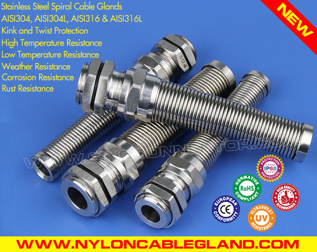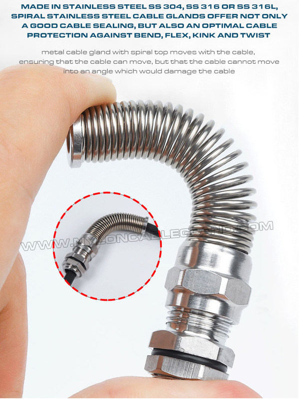 高い耐衝撃性と広いクランプ範囲,高温および低温耐性,耐候性の利点を備えた, ねじれ防止および曲げ防止機能付き304/316/316Lタイプステンレス鋼IP68 防水メートル ケーブル グランドM12~ M50 は,ねじれ防止および曲げ防止機能が備わっており,追加のスパイラル保護スプリングが付属しています. 耐薬品性,耐食性,耐熱性の能力があり,また,高引張強さ,高靭性,良好な耐水性,優れた曲げ保護,および長い使用時間の能力も備えています.