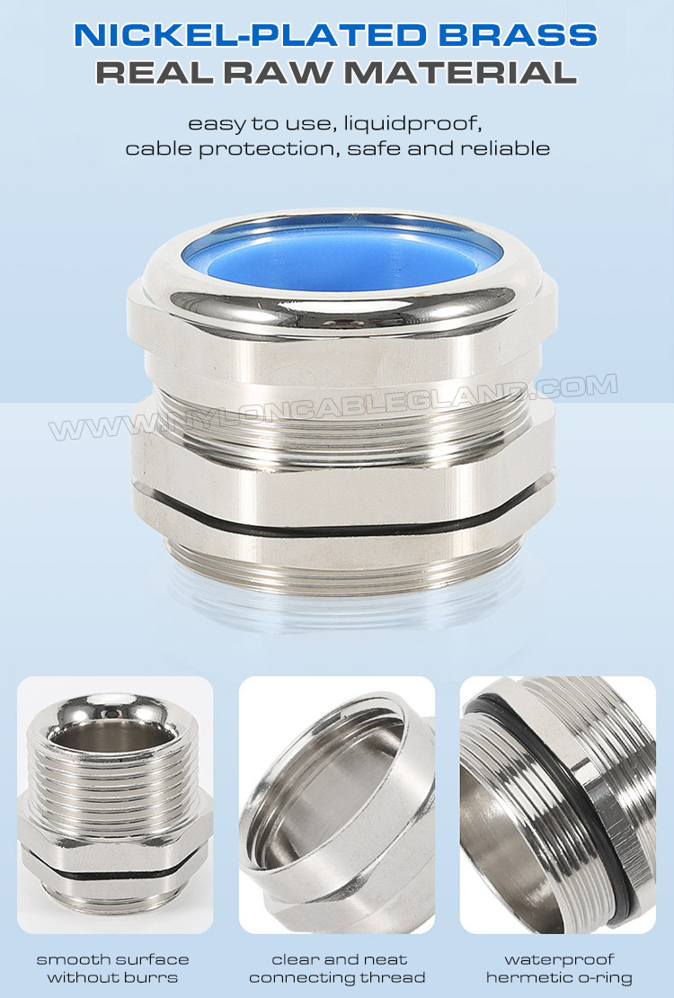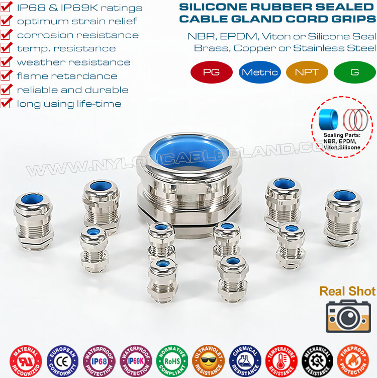 青いシリコン シールと O リング付きの調整可能な防水 IP68 PG 真鍮 (銅) ケーブル グランドは,非磁気ブラスまたは銅で製造され,PG接続糸で利用できます.電気機器や部品に電線を挿入し,電源を固定させるように設計されている.結合,隔離,密封,保持,ストレッチ緩和,非装甲ケーブルと線のための機械的サポートを提供しています.