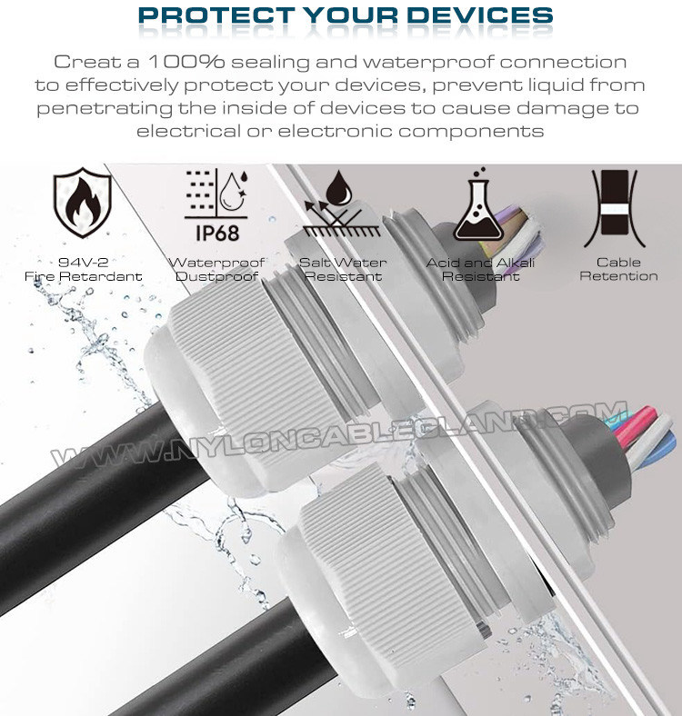 [プレミアム品質]私たちのケーブル腺は高レベルの耐張性と強度 ポリアミド66素材で作られています 紫外線,天候,湿度,炎,水,酸,アルカリ,アルコールと一般的溶融性に対して効果的に抵抗します室内・室外での使用に長時間保護.